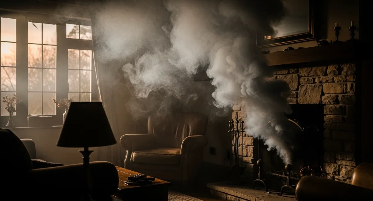 Если при открытии дверцы печи или камина дым валит в комнату — это критический засор. Продолжать топить опасно: риск отравления угарным газом.