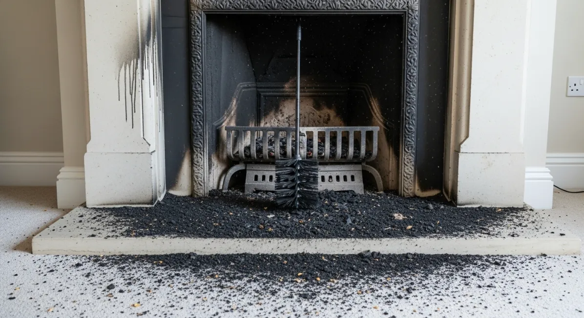 - Откройте топку, соберите осыпавшуюся сажу совком