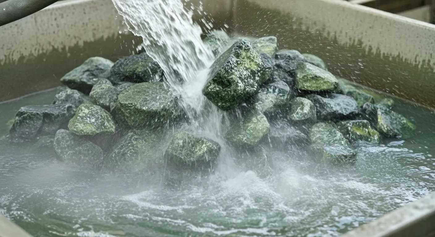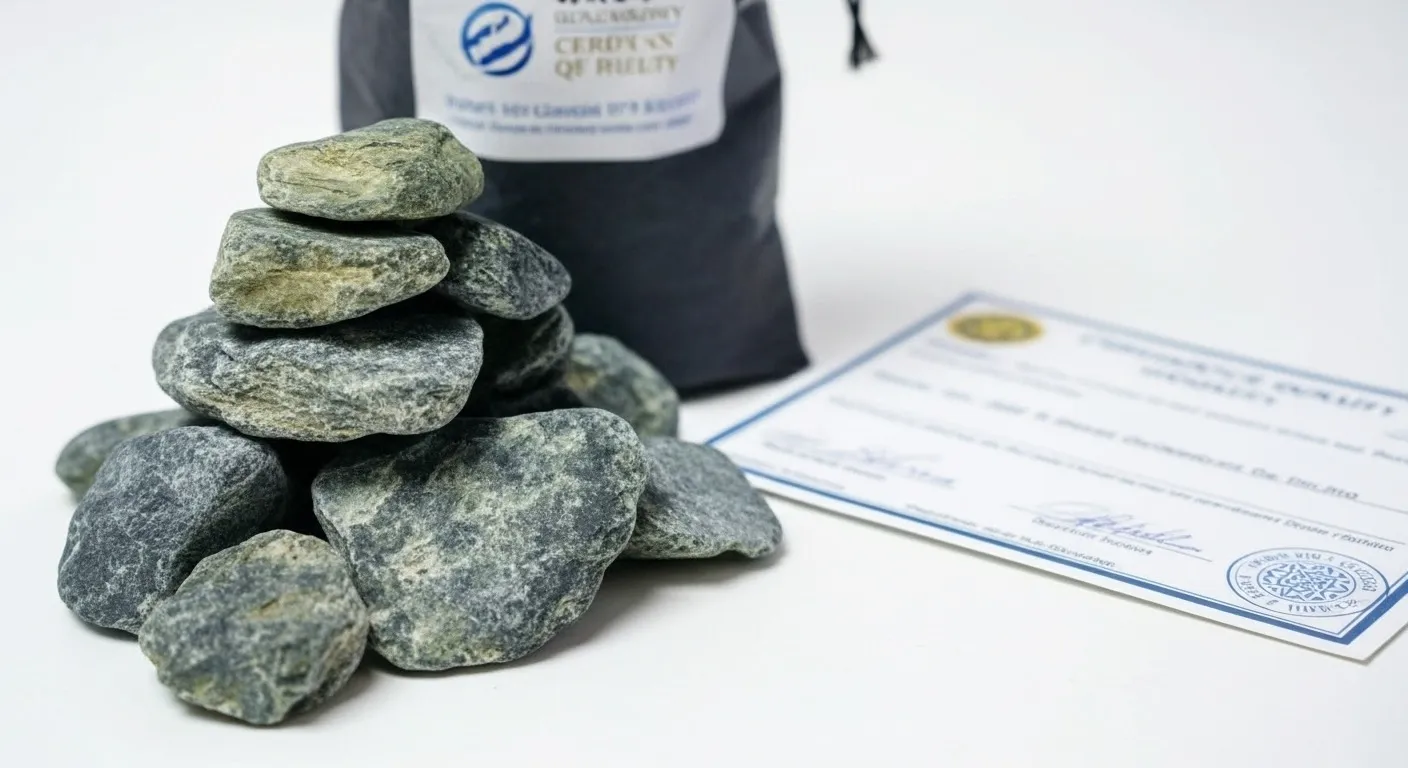 ⚠️ Критически важно: Для бани подходит только массивный серпентинит без асбестовых волокон (хризотила). Асбест при нагреве выделяет канцерогенные волокна. При покупке требуйте сертификат, подтверждающий отсутствие асбеста.