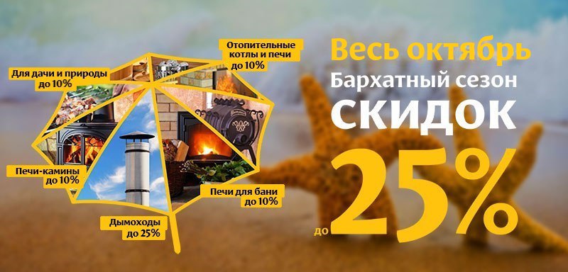Только в октябре масштабная распродажа печей, дымоходов и мангалов! Скидки до 25%!